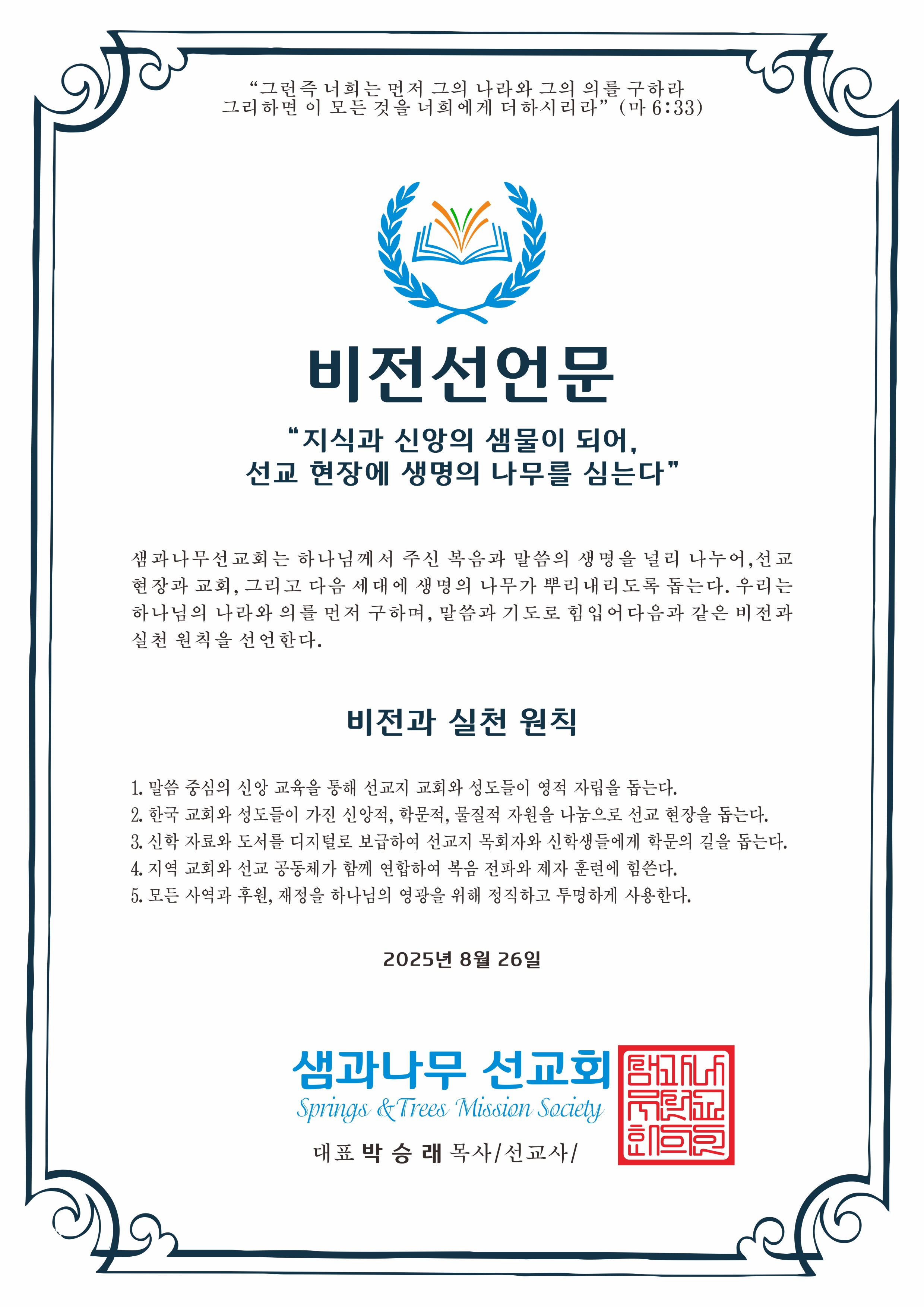 시편 23:1-6 “여호와는 나의 목자시니 내게 부족함이 없으리로다 그가 나를 푸른 풀밭에 누이시며 쉴 만한 물 가로 인도하시는도다 내 영혼을 소생시키시고 자기 이름을 위하여 의의 길로 인도하시는도다 내가 사망의 음침한 골짜기로 다닐지라도 해를 두려워하지 않을 것은 주께서 나와 함께 하심이라 주의 지팡이와 막대기가 나를 안위하시나이다 주께서 내 원수의 목전에서 내게 상을 차려 주시고 기름을 내 머리에 부으셨으니 내 잔이 넘치나이다 내 평생에 선하심과 인자하심이 반드시 나를 따르리니 내가 여호와의 집에 영원히 살리로다”